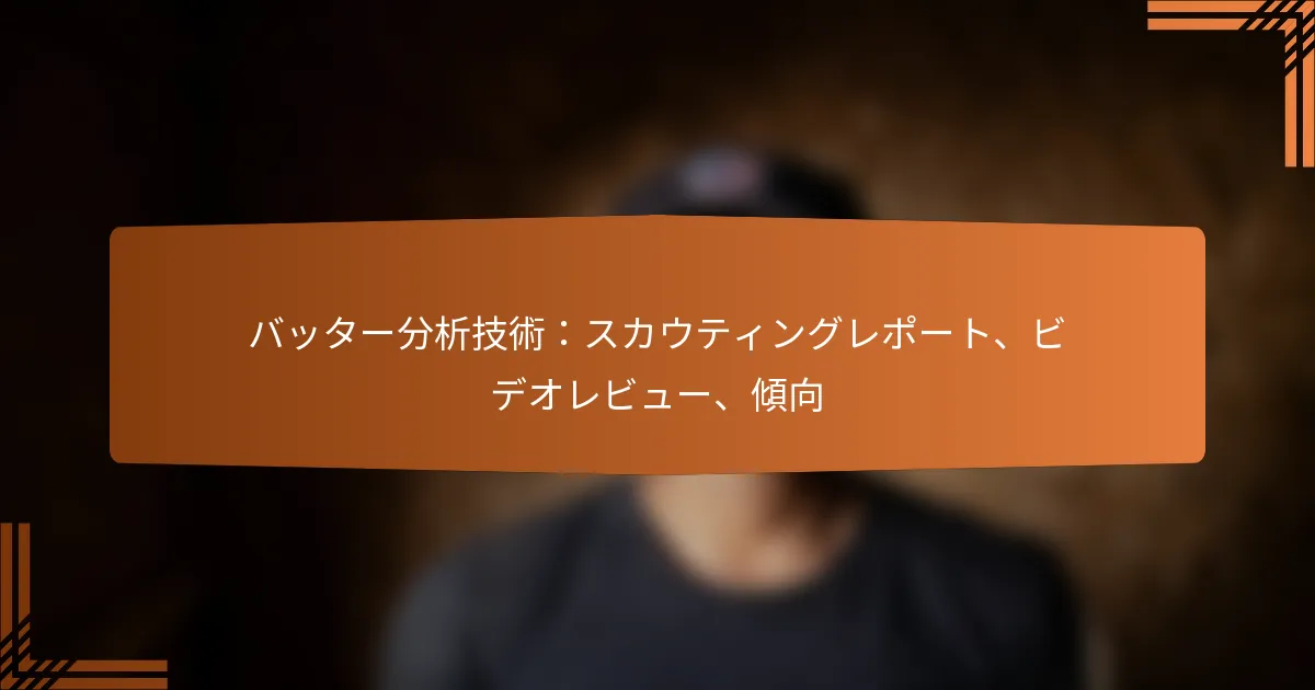 バッター分析技術には、スカウティングレポート、ビデオレビュー、傾向の特定が含まれます。これらの方法は、チームが選手のパフォーマンスを評価し、データに基づく洞察に基づいて情報に基づいた意思決定を行うのに役立ちます。